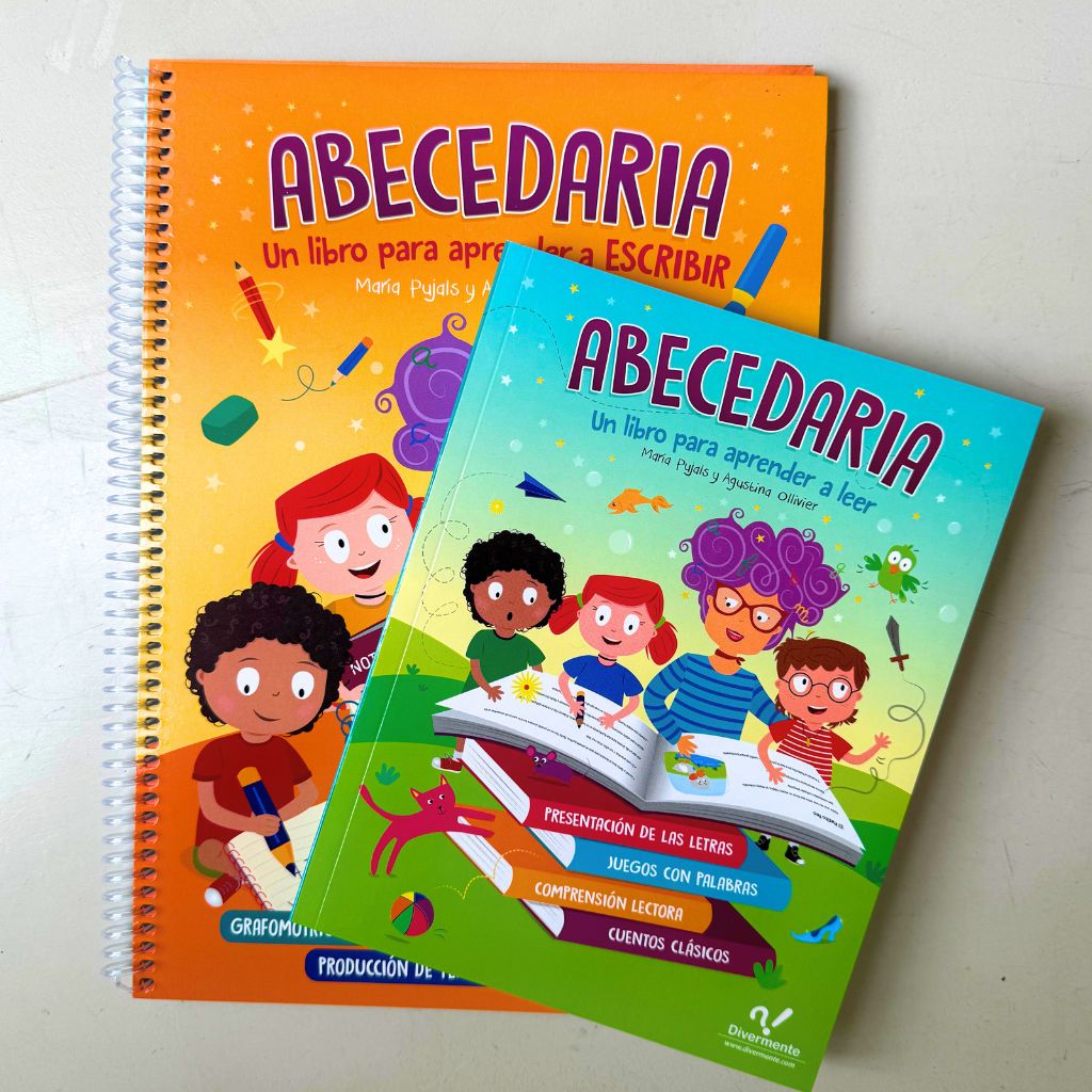 2) Libro Abecedaria: Un libro para aprender a leer: Un libro pensado para que cualquier persona que sepa leer, pueda enseñar a leer. A partir de los 6 años. Trabaja de manera secuenciada, gradual y sistemática la presentación de letras y sus sonidos, sílabas, oraciones, textos (cortos y largos) y ejercita en simultáneo la decodificación y la comprensión lectora. Cualquier persona puede aprender a leer con Abecedaria.