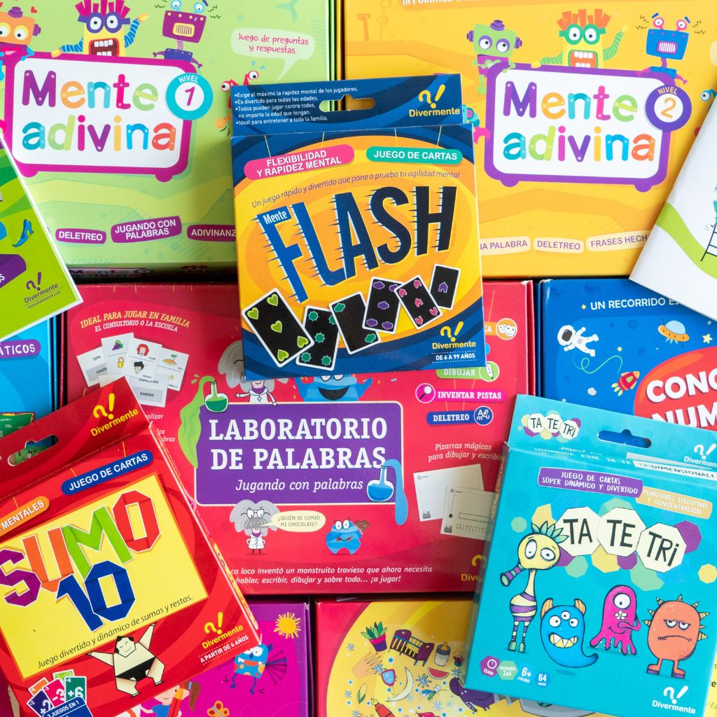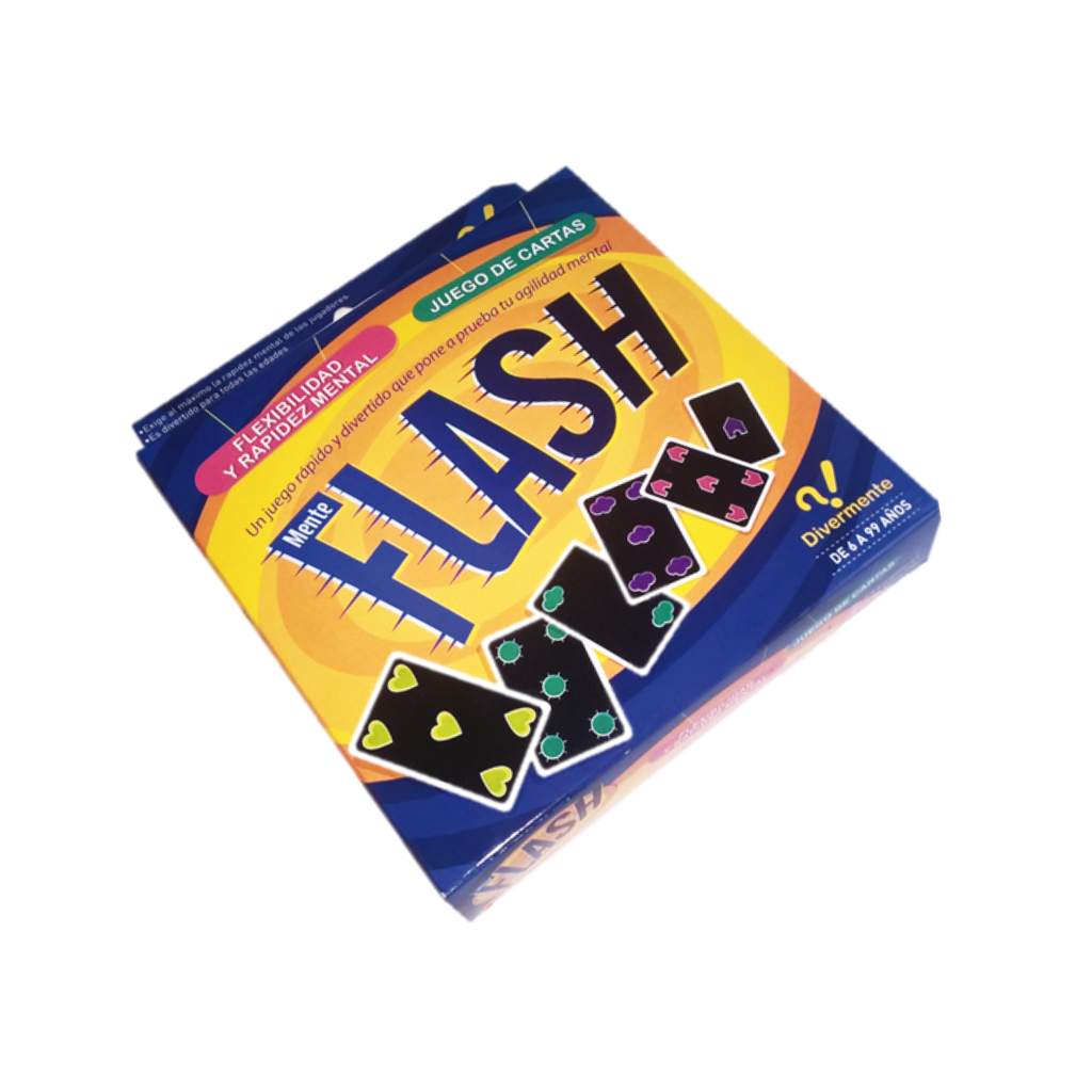 10) Mente Flash (6 a 99 años): Un juego de cartas para trabajar funciones ejecutivas. Principalmente flexibilidad cognitiva y rapidez mental. ¡Súper rápido!