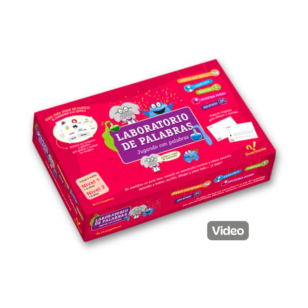 ¿Qué contiene?: 80 tarjetas con palabras // 1 pizarra para escribir y borrar // 1 marcador // 1 tablero // 4 conos de colores // 1 dado // instrucciones.