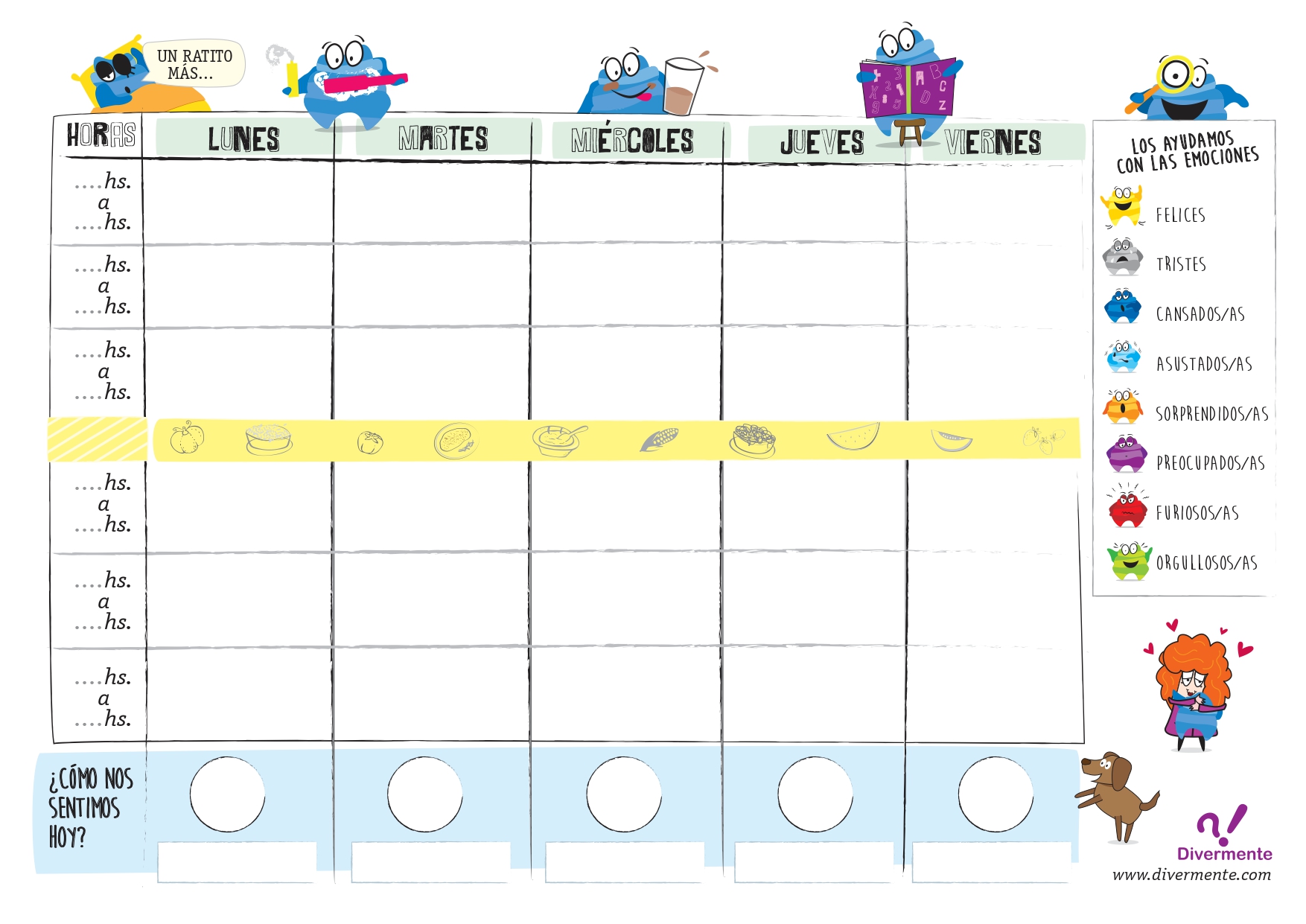 Armamos estos organigramas / grillas horarias para compartirlo con las familias y ayudarlas a organizarse en la diaria con los chic@s.